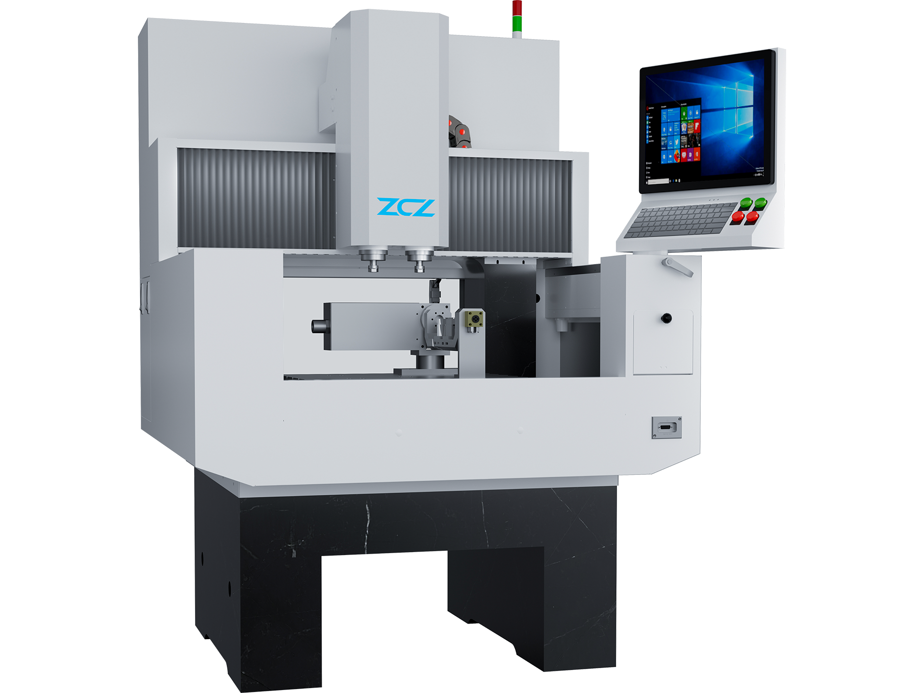 胶架眼镜框面及比的雕刻,拥有两个雕刻头,一次性可同时加工两副,也可独立双工序分别加工。另配备独立旋转第四轴,可加工连体庄头位,立体雕面加工。